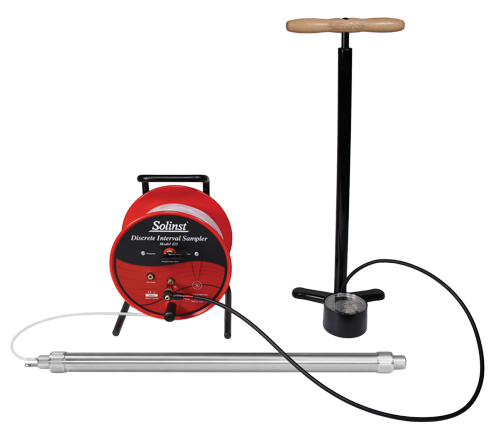 The Solinst Model 425 is a stainless steel sampler, with LDPE tubing mounted on the convenient Solinst reel. The reel has a pressure attachment for the high-pressure hand pump and a pressure/vent switch which is used to apply and release the pressure on the sampler. A sample release device is included with each Discrete Interval Sampler.