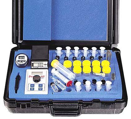 The PetroFLAG system is completely field portable. Sample kits are sold separately and not included with the rental meter. The PetroFLAG meter is a lightweight, rugged hand-held unit powered by a 9-volt alkaline battery. The meter is menu-driven for ease of use and utilizes an EEPROM memory system.