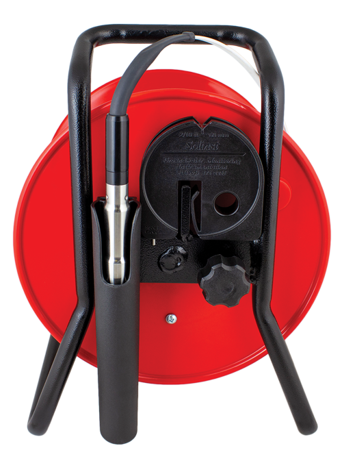 The 105 Well Casing & Depth Indicator uses a dual-function stainless steel probe connected to clearly marked flat tape, fitted on a well-balanced reel.